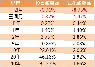 假設台幣投資金額為100萬元,投資年數與投資報酬率的影響如下圖所示。