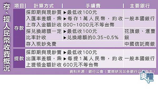 先了解人民幣定存與台幣定存的差異,台幣定存是用本國幣直接定存,故不用負擔任何風險,所以1.37%年利率是無風險報酬率,然而,人民幣定存需要用外幣投資,台幣匯兌成人民幣投資,投資期滿人民幣匯兌成台幣,之間會有匯率差異,此匯率差異就是匯率風險。匯兌損失不只是匯率變動才會存在,買入及賣出外幣之間也有匯差損失。除非買入與賣出外幣不存在匯差,否則匯兌損失是必然存在的。除了匯兌風險外,人民幣存款與提款是會收存手續費的,以下只討論匯兌風險。