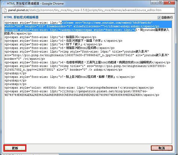 6、在痞客邦網誌,工具列上選html功能鍵,將網誌改成html編輯模式