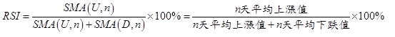 由上式可知,RSI的意義為近n日價格波動中,平均上漲強度,因此,RSI>50%表示近n日上漲強度較強,反之,RSI<50%表示近n日下跌強度較強。